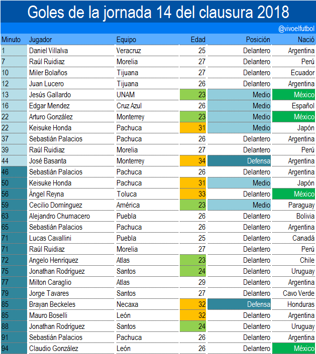 Un total de 28 goles se anotaron en la jornada 14 del futbol mexicano, se empata en esta jornada la mejor cifra obtenida hasta hoy en este torneo clausura 2018.