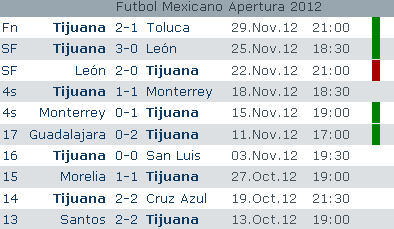 En Liguilla los Xolos, llevan 3 triunfos, 1 empate y 1 derrota. De local empataron a 1 con Rayados y le ganaron 3 a 0 al León, de visita le ganaron 1 a 0 a Rayados y perdieron 2 a 0 contra León. Sus partidos no marcan ninguna tendencia, claramente es un equipo que se ha adaptado al rival y lo ha enfrentado anulándolo y superándolo en sus debilidades.